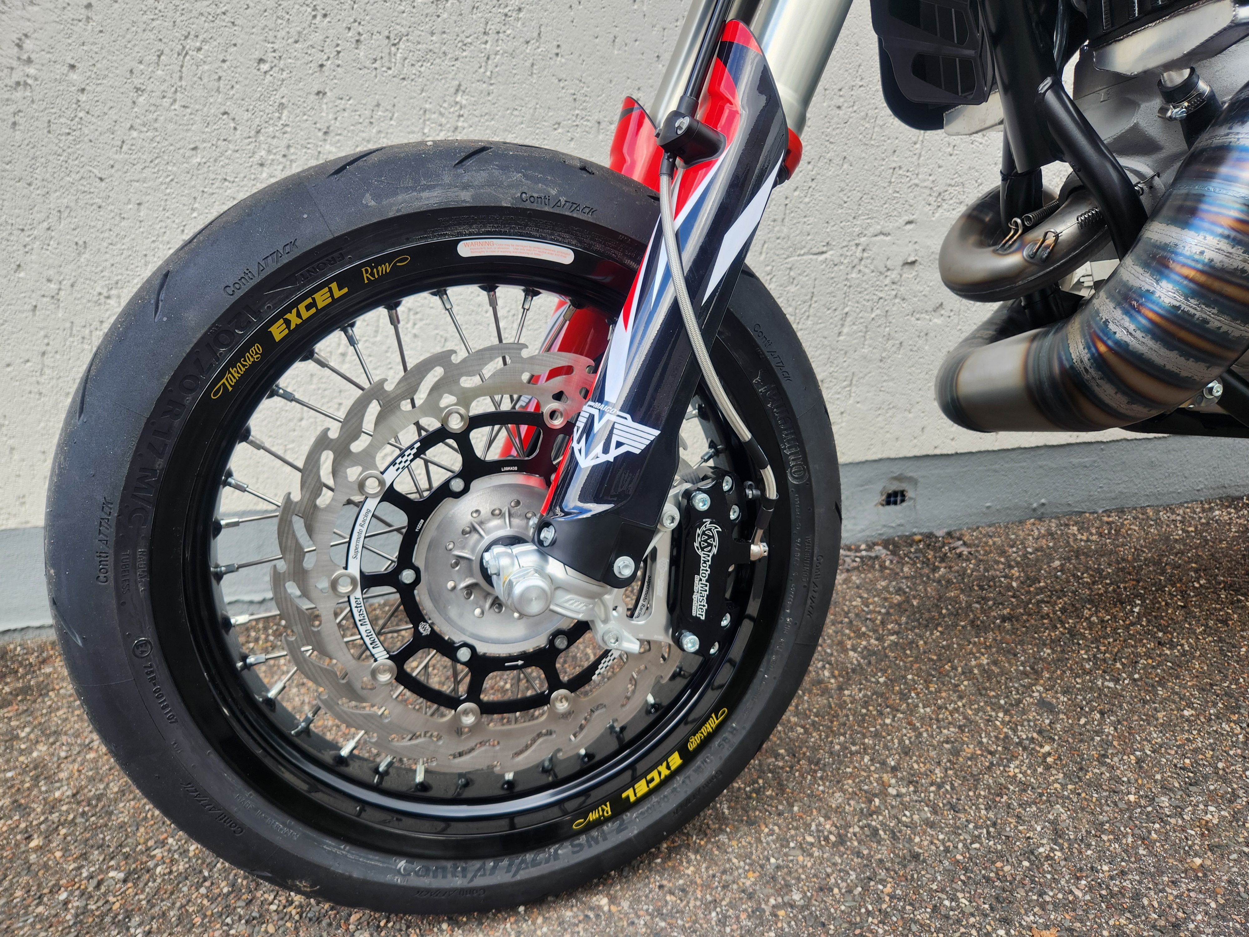 Front brake: Moto Master Super Moto Racing kit with 320 mm full floated disc